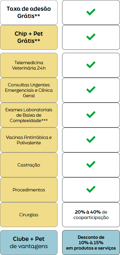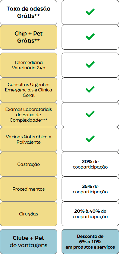** Taxa de Adesão e +Pet Chip de Identificação gratuitos por tempo limitado.